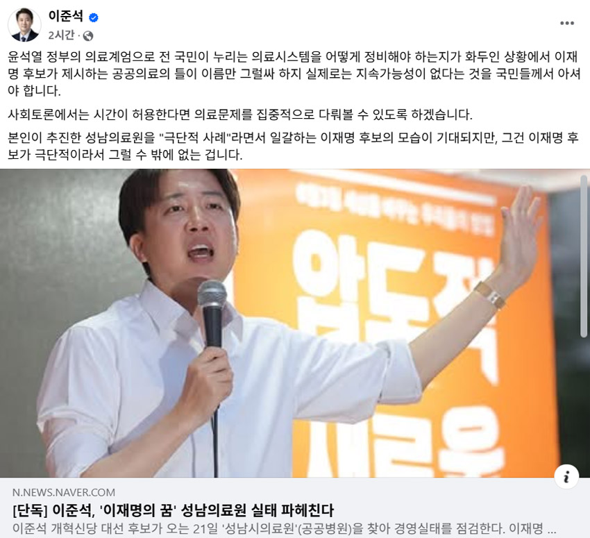 ◆ 개혁신당 공보단장 페북: 한모씨 측근들한테 연락옴